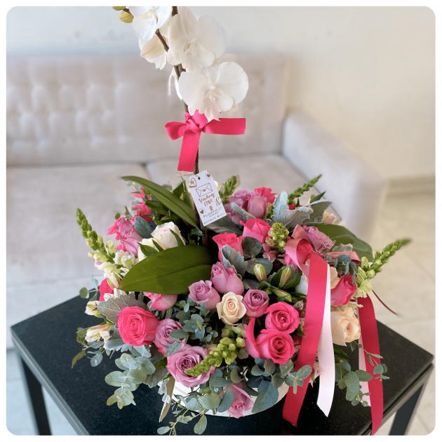 Uno de nuestros arreglos más popular. Jardín de Orquídea es una mezcla de temporada de nuestras flores favoritas, que utiliza la combinación perfecta de tonos pastel y brillantes.